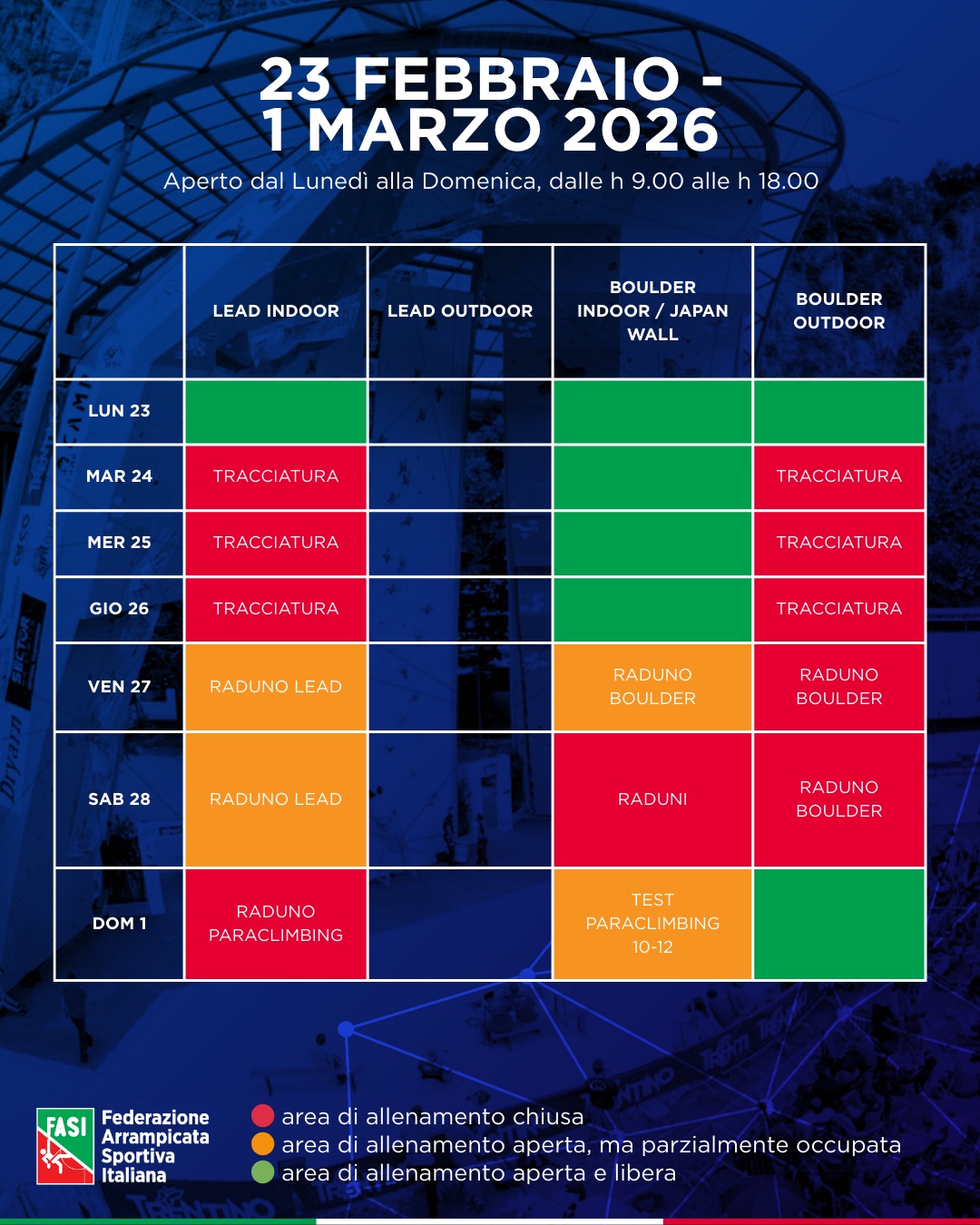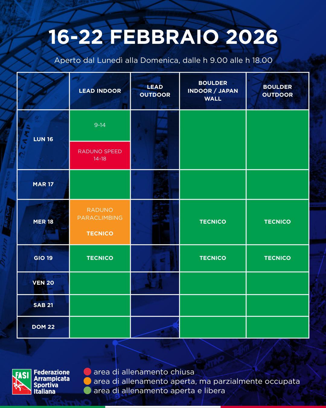 CONSULTA LA DOCUMENTAZIONE: https://www.federclimb.it/nazionali/documenti/centro-tecnico-federale-arco.html