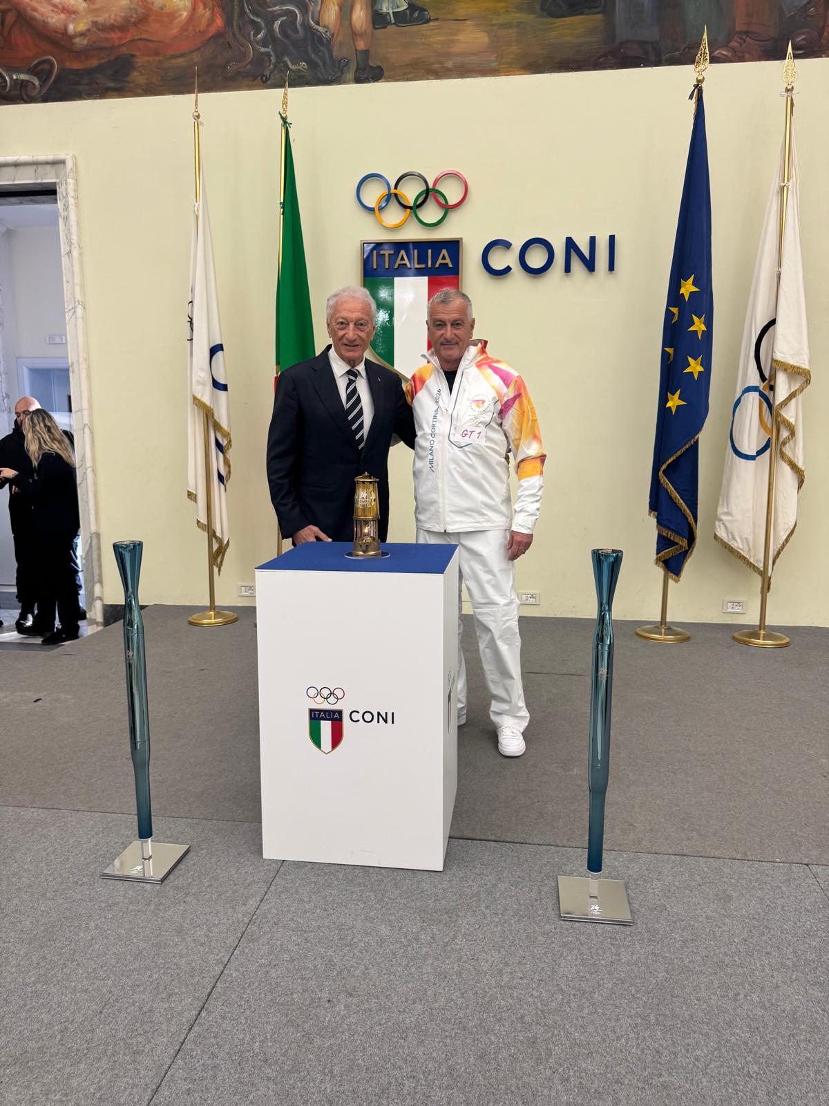 Protagonista della cerimonia, a unire epoche diverse nel segno dei cinque cerchi, anche Giancarlo Peris, l’ultimo tedoforo dei Giochi di Roma 1960. Dopo 65 anni è stato lui a portare con sé all’interno dello Stadio dei Marmi la lanterna dove era custodita la fiamma, passandola a Malagò, che ha acceso il braciere del viaggio.