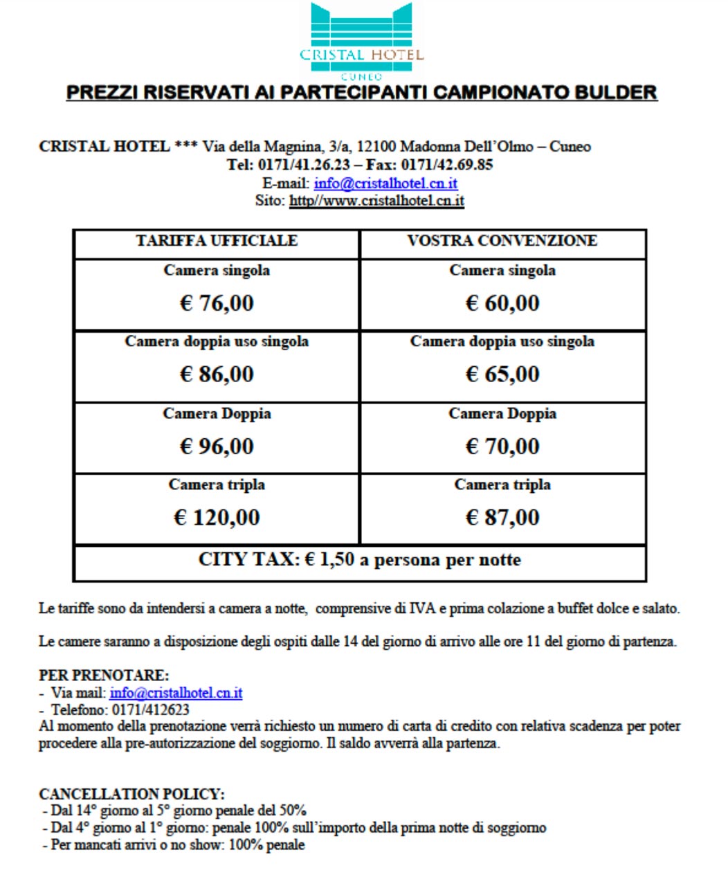 giorni prima della data della gara e qualsiasi successiva variazione dovrà essere