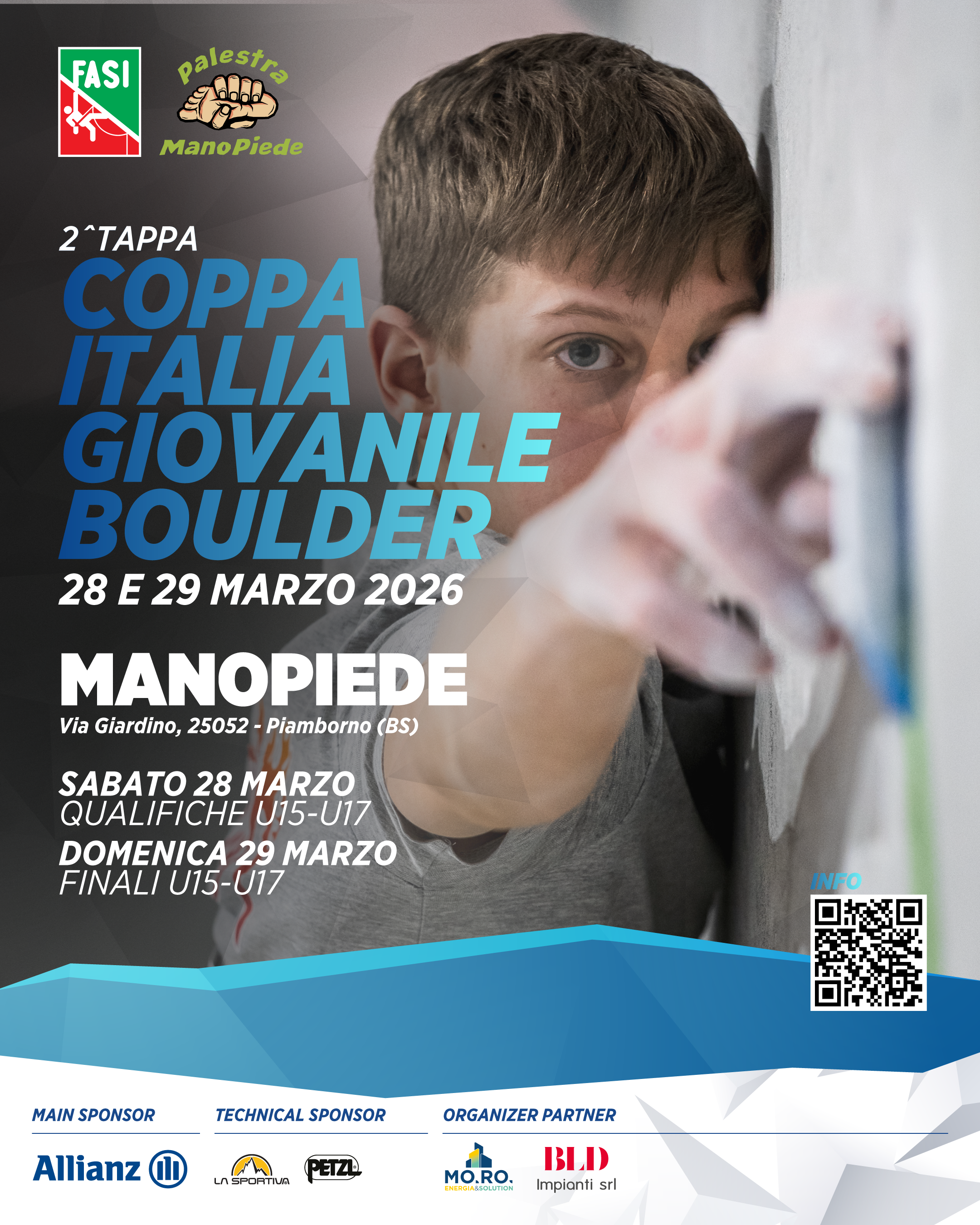 Si terrà alla Manopiede di Piamborno (BS), Sabato 28 e Domenica 29 Marzo, la seconda tappa del circuito di Coppa Italia Giovanile Boulder 2025 dedicata alle categorie Under 15 e 17.